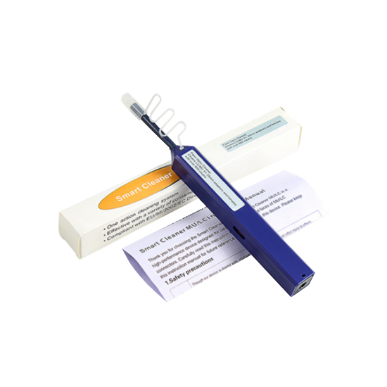 O limpador de um clique de 1,25 mm é uma opção fácil de usar para limpar conectores em adaptadores. Basta inserir o limpador com um clique em um adaptador e pressionar até ouvir um "clique". A Caneta Limpadora de Fibra Óptica usou a ação mecânica de empurrar para avançar uma fita de limpeza de grau óptico enquanto a ponta de limpeza é girada para garantir que a face final da fibra seja limpa de maneira eficaz, mas suave.