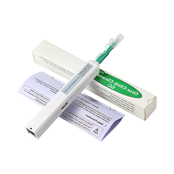 O limpador de um clique de 2,5 mm é uma opção fácil de usar para limpar conectores em adaptadores. Basta inserir o limpador com um clique em um adaptador e pressionar até ouvir um "clique". A Caneta Limpadora de Fibra Óptica usou a ação mecânica de empurrar para avançar uma fita de limpeza de grau óptico enquanto a ponta de limpeza é girada para garantir que a face final da fibra seja limpa de maneira eficaz, mas suave.